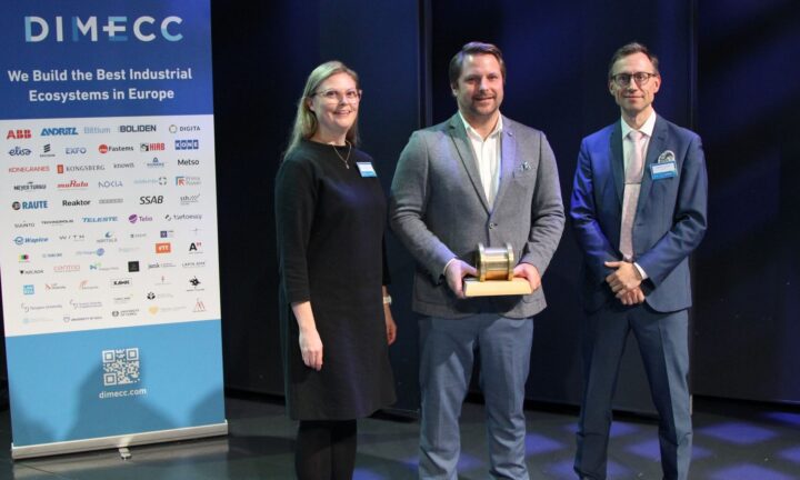 (kuvassa) Pentti Malaska -palkinnon otti vastaan Solar Foodsin teknologiajohtaja Juha-Pekka Pitkänen (keskellä). Tunnustuksen luovuttivat kilpailun koordinaattori Laura Pouru ja palkintoraadin puheenjohtaja Juha Kaskinen. Kuva: Anne Arvonen/Turun yliopisto